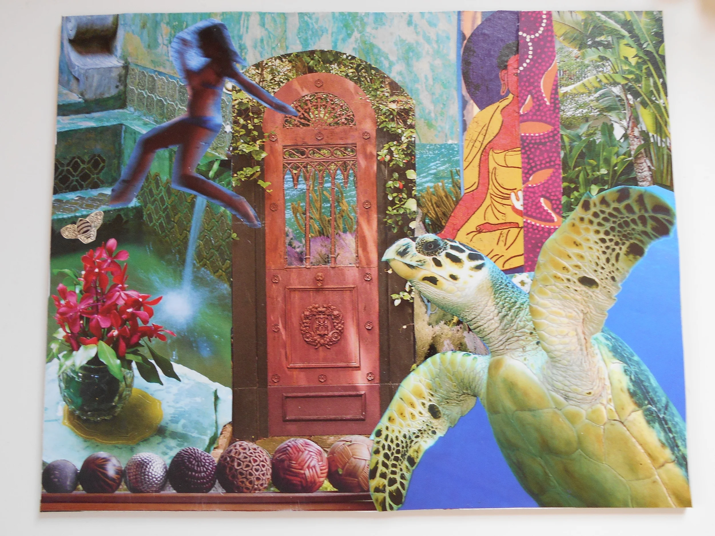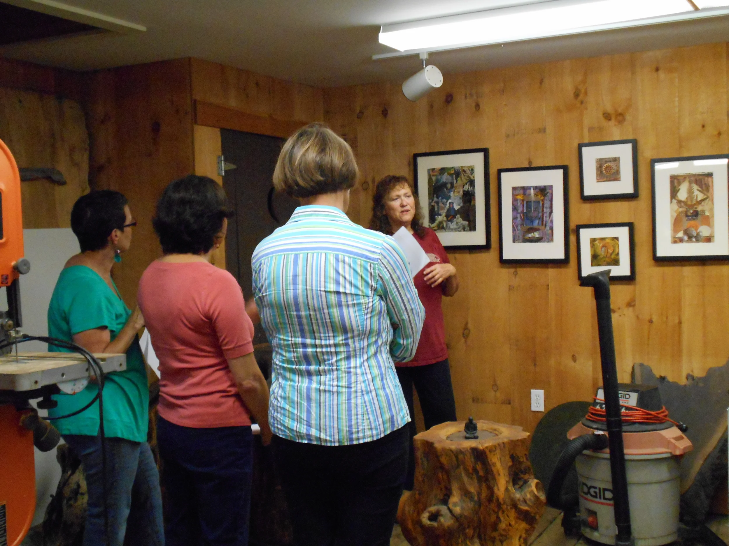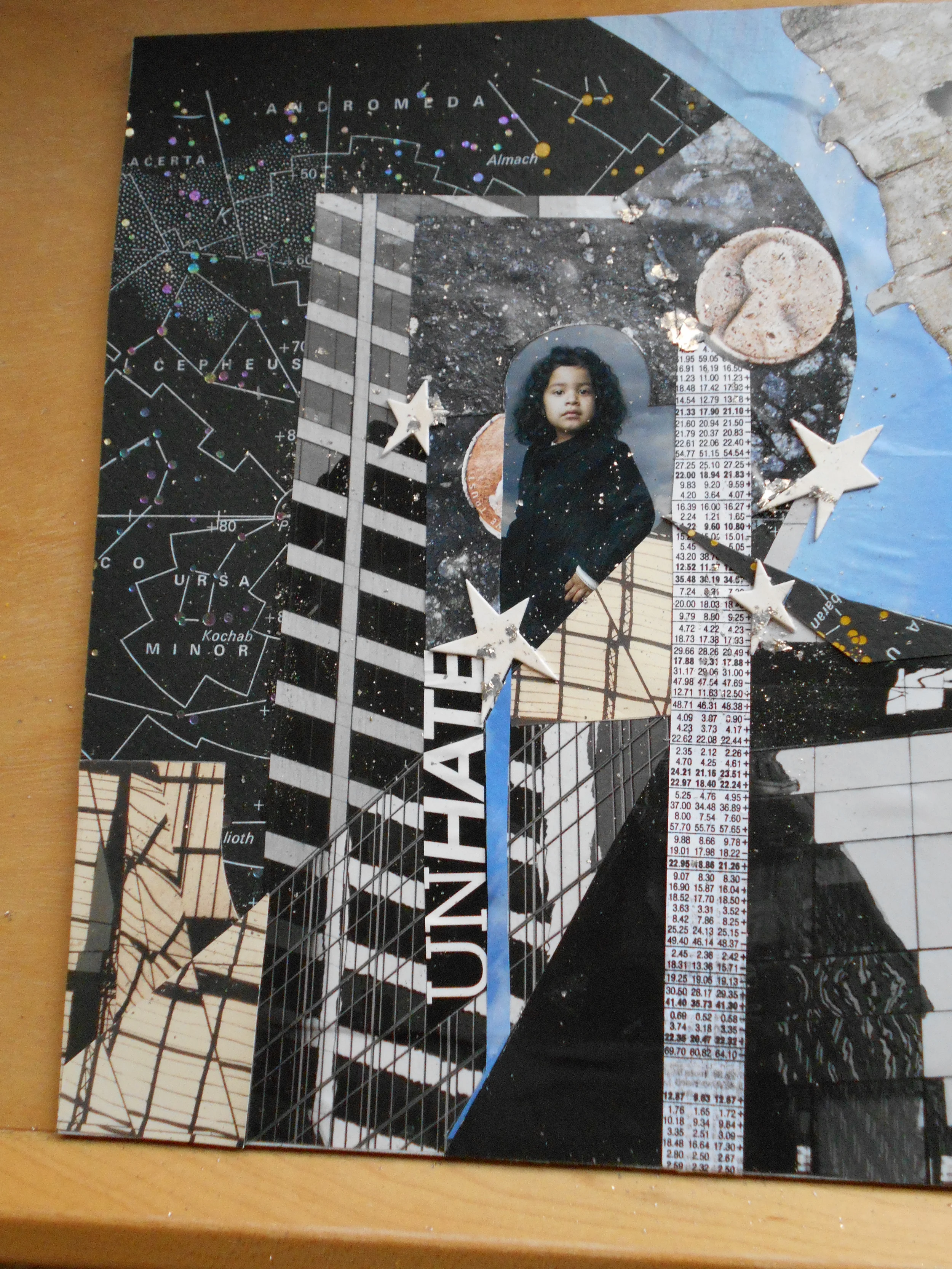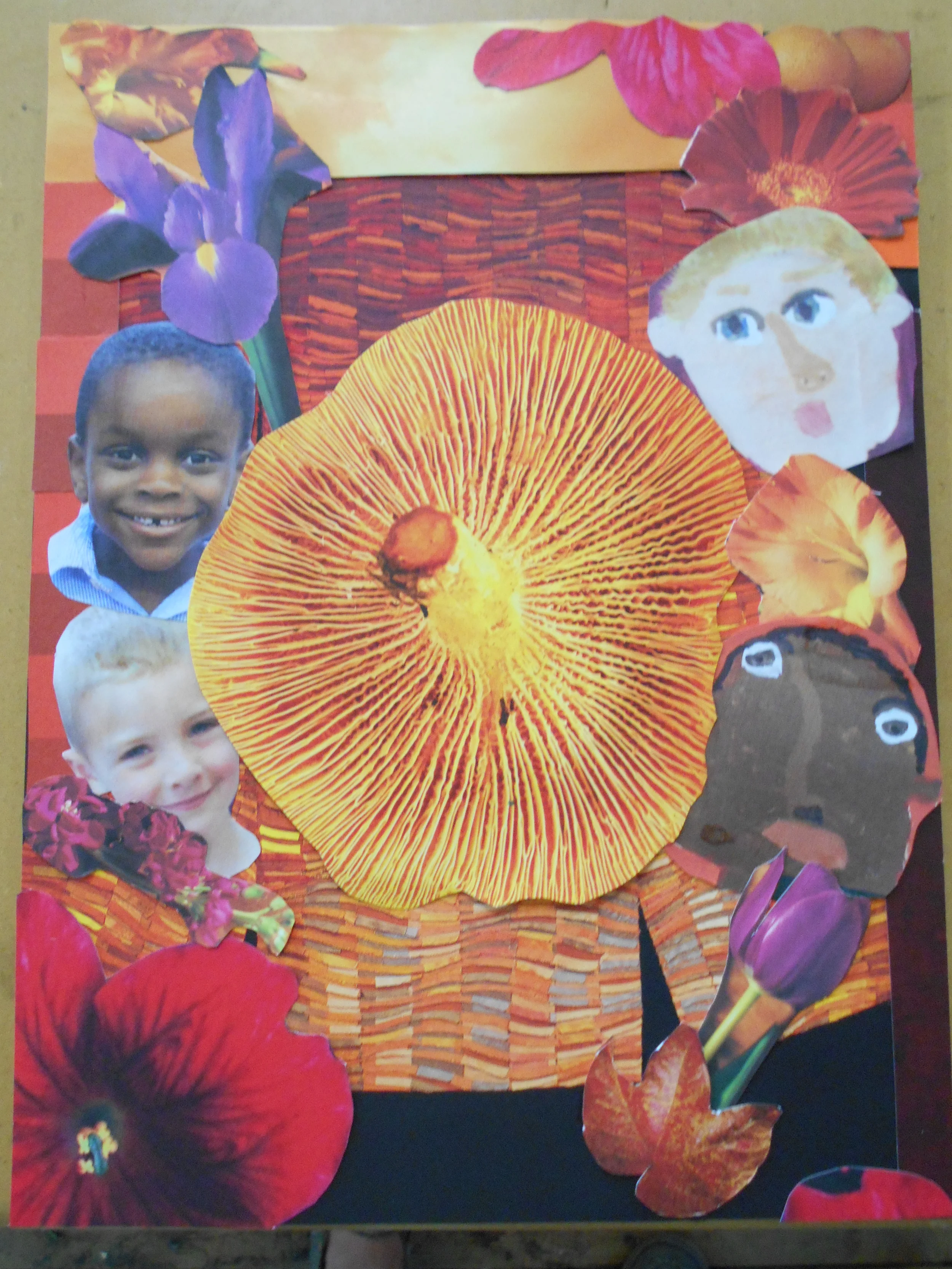 Artist and publisher (and OFPF Bounty Blogger) Lynn Horsky taught the art of collage on a summer Sunday that started with dramatic thunderstorms and ended with the bright sun and inspired participants.