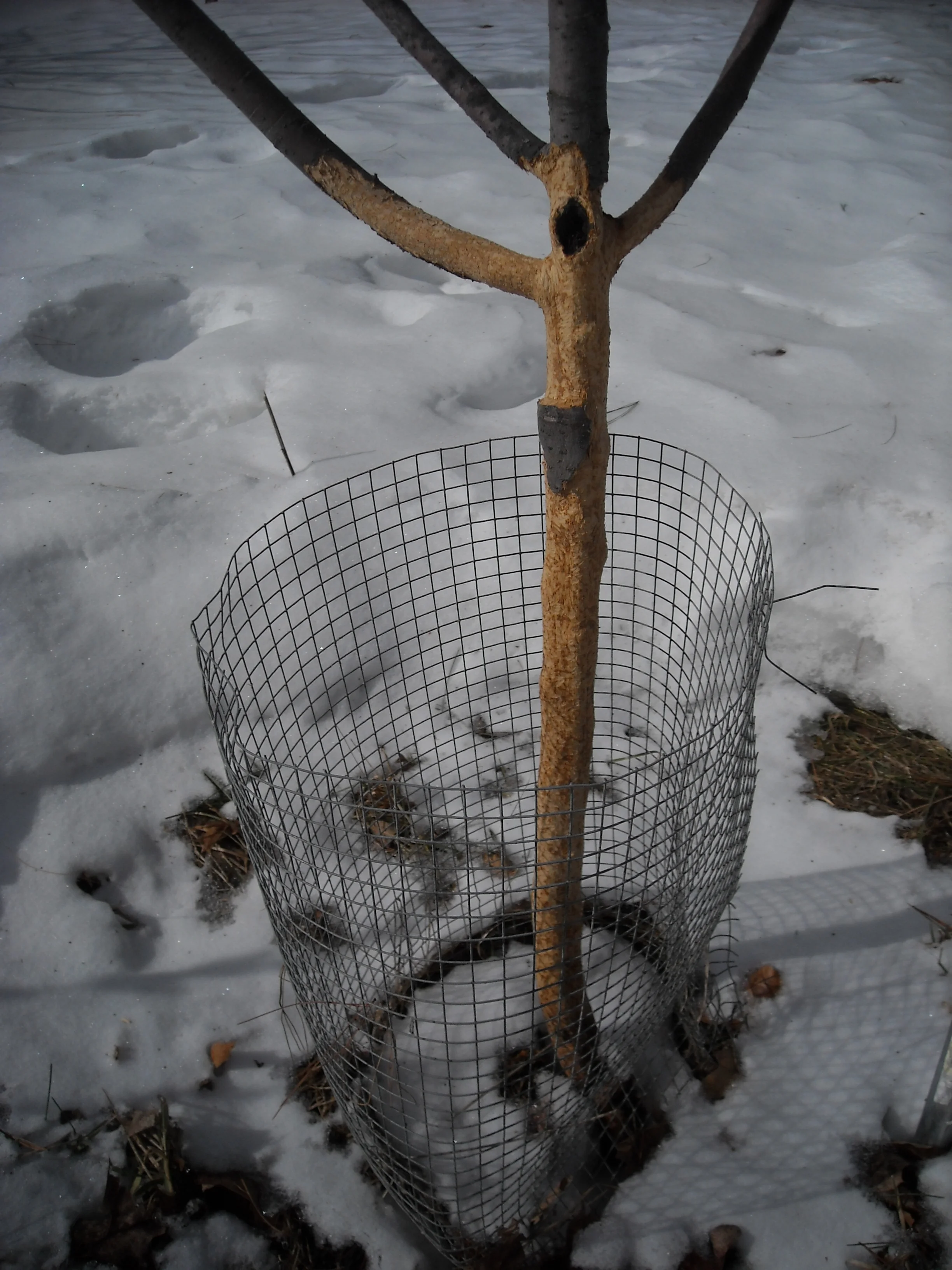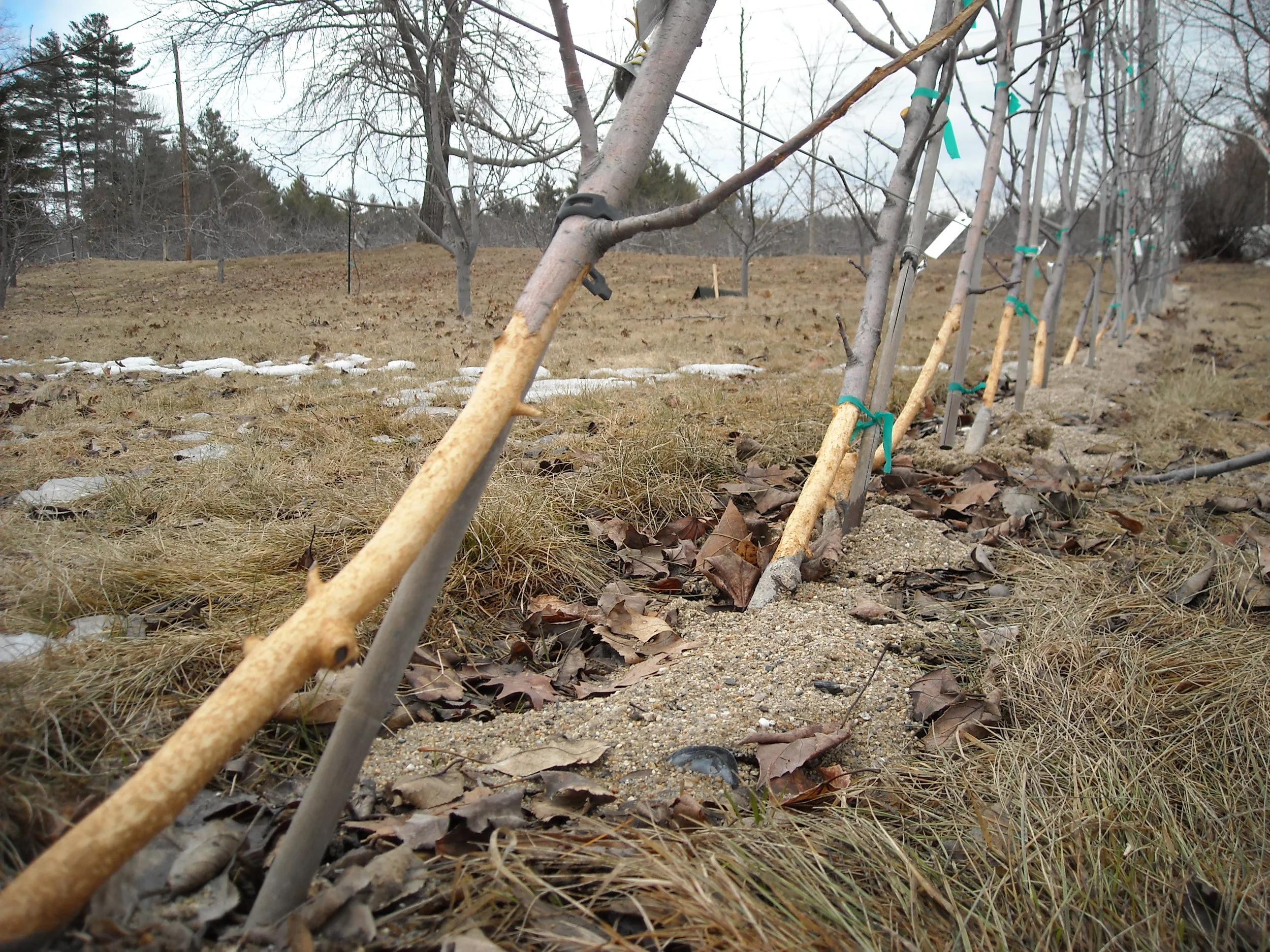 We are sad to report that some of our trees have suffered at the teeth of a destructive rodent known as the meadow vole. Whether the reason is because we decided to leave the grasses and other vole-loving plants under our apple trees or it's because of this year's extremely long, snow-covered winter; we just don't know. What we do know is that we need to take some quick action to prevent any more damage.