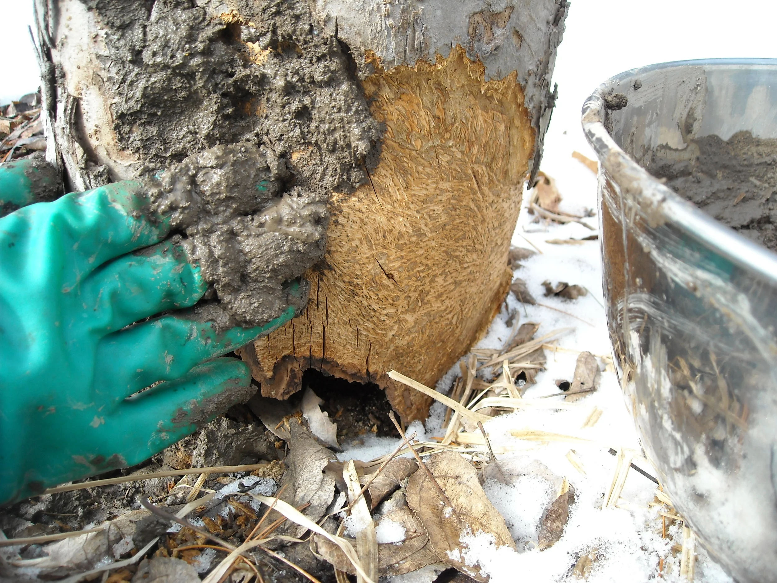 Now that we have taken care of the wounds, we will begin the next step: gathering scion wood for bridge grafting - a technique to deliver energy and nutrition to the damaged trees by attaching first-year wood. Stay tuned and cross your fingers!
